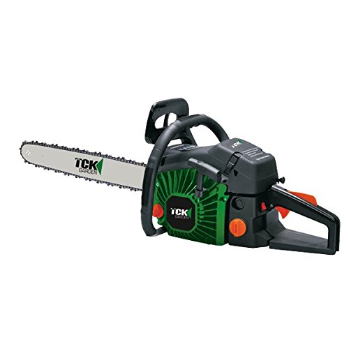 PRODUCT DESCRIPTIONS:The TCK 45cc Petrol Chainsaw is one of the fastest selling chainsaws we have ever produced and when you see its specifications it is not hard to see why. The TCK 45cc 2 Stroke engine is air cooled single cylinder and rated power output of 2500 Watts. It has a 40 cm TCK bar and aluminium launcher largely perforated for better heat rejection. Air filter with easy access thanks to clipped cover which allows frequent cleaning. Bar and Bar chain .325" in 40 cm cutting length. Cut faster than3/8 chain pitch. Ergonomic soft grip handle and automatic return starter. Automatic chain lubrication and a fuel tank capacity of 550ml.About TCK: TCK have been in Europe for over 18 years and been supplying such companies as Castorama and Leroy Merlin! Now we are bringing New and Exciting products to the UK and with our second to none customer service care we believe we can provide you with the best care possible. Our UK Operations Director has had over 20 years' experience in customer care and reverse logistics. Our UK customer service centre is based in the West Midlands with full product support availability you can contact us either by phone on : 01902 408 544 or by email on adriancleary@bftg.eu All our spares are dispatched from our warehouse in the West Midlands, we will always help our customers with anything that is required. Our products also come with a 2 year return to base UK Manufacturer's warranty and have our own in house technicians on hand to resolve any technical queries or repairs that are required. Our technicians are here to provide advice, carry out repairs and maintenance and ensure that our customers receive the best possible service for their machines. Our service centre can handle both in and out of warranty repairs with every step of your query being logged and have full traceability